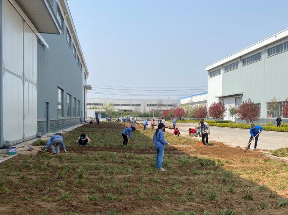 4月5日,淄博市能源集團黨委所屬山東鑫能設備制造有限公司黨支部利用清明節假日組織全體黨員干部職工開展植綠種草活動,綠化、美化生態環境,以實際行動踐行綠色發展理念。大家個個熱情高漲、干勁十足,分工合作、配合默契,經過大家的奮戰,新栽種的麥冬在公司廠區構