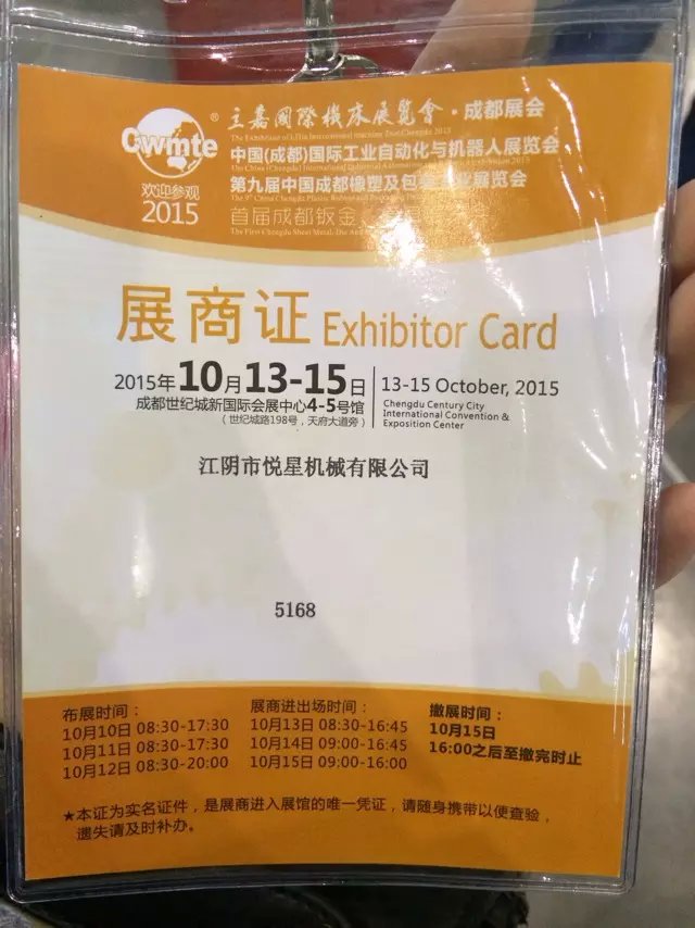 第九屆中國成都橡塑及包裝工業(yè)展覽會,時間2015年10月13—15日,地址:成都世紀城新國際會展中心4-5號館(世紀城路198號,天府大道旁)望新老顧客奔走告知,有興趣得朋友可以來展會試機。