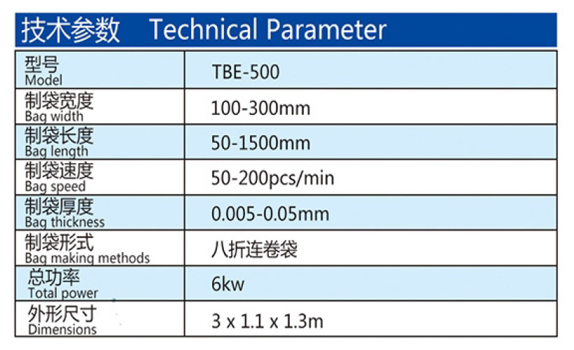 機(jī)器特性 此設(shè)備為生產(chǎn)連卷八折背心垃圾袋的專(zhuān)用設(shè)備,單通道高速無(wú)拉伸,操作簡(jiǎn)單,底封好,收卷整齊,個(gè)數(shù)準(zhǔn)確,手動(dòng)收卷。 此設(shè)備采用全鋼板一體而成,用電220V照明電即可。