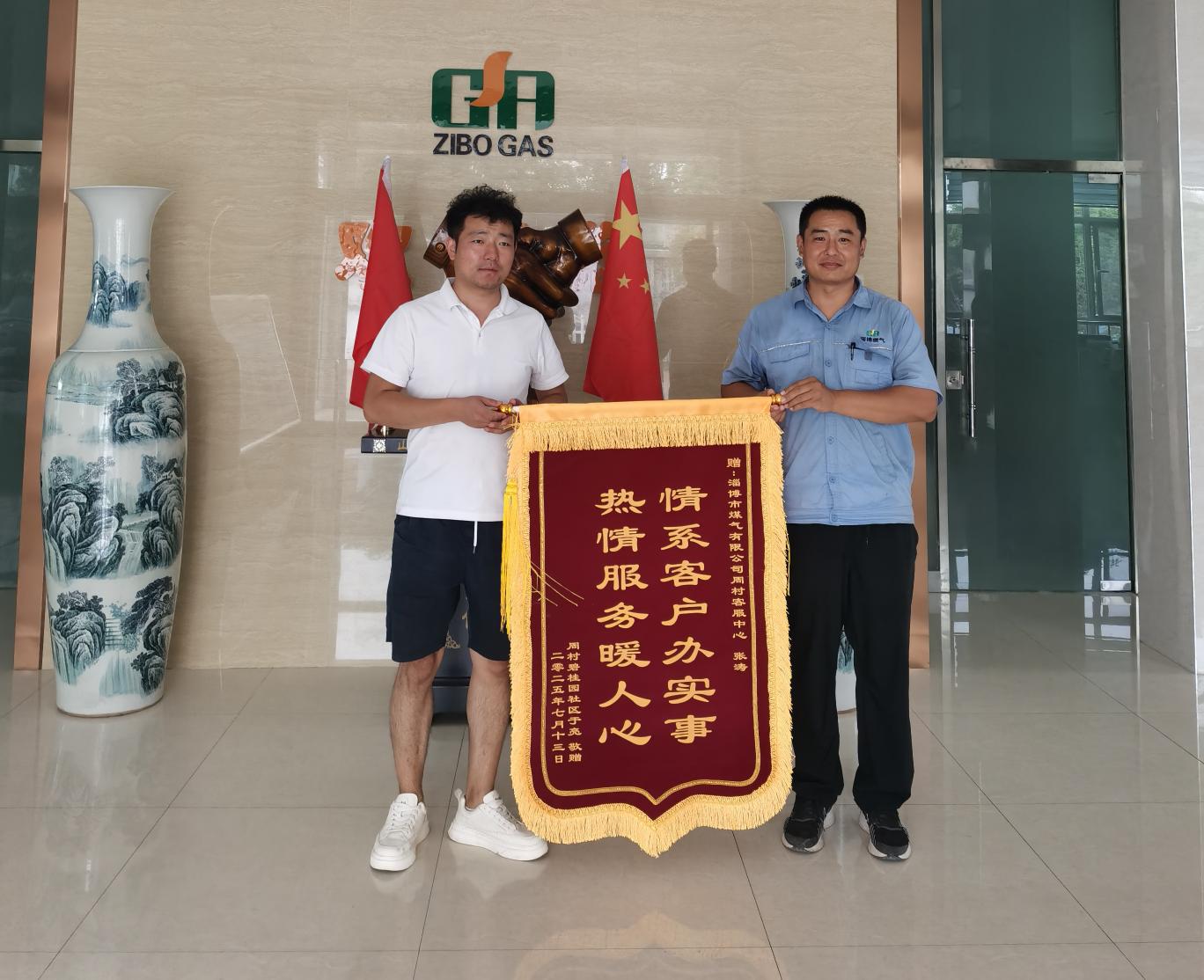 “真是太感謝了!不僅幫我解決了燃眉之急,服務(wù)還這么周到細致,這面錦旗你們一定要收下!” 8月4日下午,家住碧桂園小區(qū)的一位用戶將一面寫有“情系客戶辦實事,熱情服務(wù)暖人心”的錦旗送到了市能源集團煤氣公司周村客服中心,并向客服中心主任張濤同志連連表達謝意。